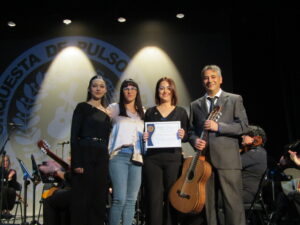 Tras la bienvenida a los nuevos integrantes, el público disfrutó de un repertorio que combinó obras clásicas con adaptaciones de rock contemporáneo, mostrando la versatilidad del conjunto. Entre las piezas más destacadas se incluyó Berghain, de Rosalía, una arriesgada y brillante interpretación que sorprendió por la manera en que los instrumentos de plectro lograron capturar la fuerza moderna del tema sin perder su esencia acústica.